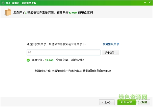 3.选择安装完毕后,软件自动选择目录安装,默认为D盘,完整完毕后即可使用