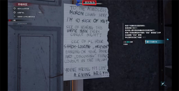 3、在不断的向前移动的过程中,玩家将会发现一些有效的信息,如写满文字的纸张,可以靠近纸张以进行文字的查看;