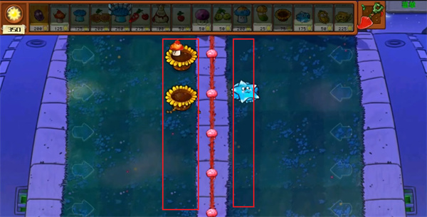 1、进入到游戏的场景内之后,玩家首先需要进行植物的种植,可以在两边进行植物的排列;