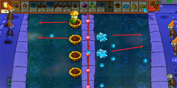 能利用具有快速冷却效果的植物来进行僵尸的攻击,以使得僵尸能迅速的被杀死在路上;