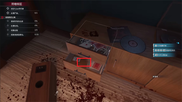 4、打开后可以看见抽屉内的物品,可以将对自己有用的物体拾取到自己的背包之中,以便后期进行使用;