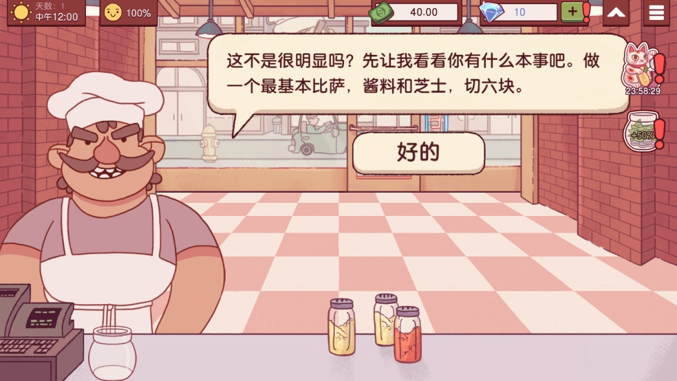 1、进入厨房之前需要接取顾客的任务才行,所以当现在的有制作披萨的任务后会自动进入厨房;
