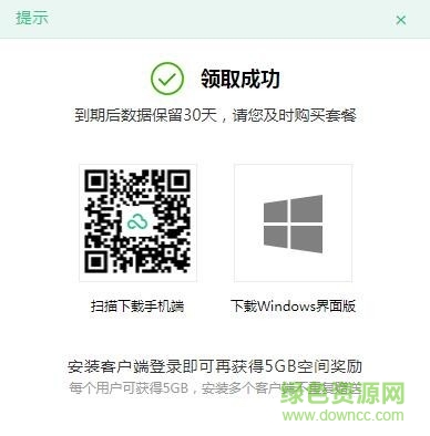 2.然后登陆客户端,系统会再次弹出福利领取界面,可继续领取5GB空间!