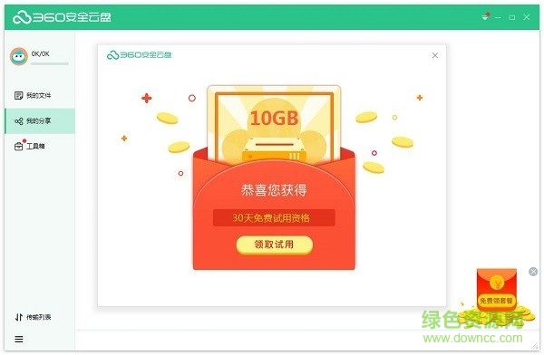 1.首先下载最新版客户端,新用户直接选择注册账号,注册完成后会跳转到官网用户中心界面,在弹出的新人福利界面直接领取5GB奖励空间;