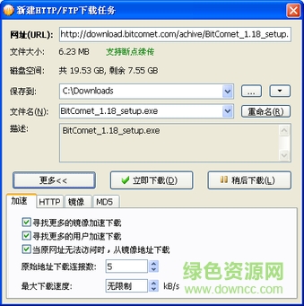 bitcomet win10 64位是一款全新的下载工具。本软件全面支持win10操作系统。支持bt下载和http极速下载服务。用户可以使用本软件管理任务资源,还可以设置定时关机操作。win10系统的小伙伴有福了!马上来绿色资源网下载使用吧!