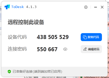 会出现弹窗,显示设备代码和连接密码。