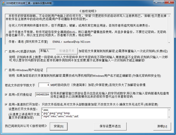 009绝密文件加密工具是一款非常实用的文件加密软件。软件使用方便,用户加密一次后,以后的所有加密均可一键完成,非常方便。该加密工具使用了多种算法加密,安全性高,难,大家可以放心使用。赶快下载体验吧!
