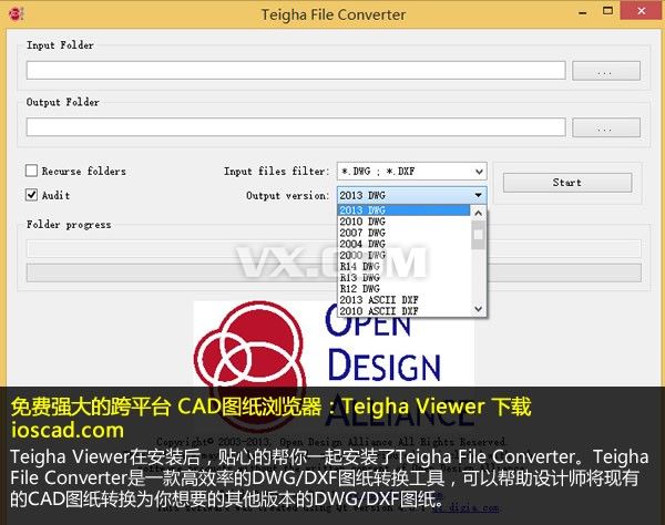 第四,也是最后一点理由,Teigha Viewer在安装后,贴心的帮你一起安装了Teigha File Converter。Teigha File Converter是一款高效率的DWG/DXF图纸转换工具,可以帮助设计师将现有的CAD图纸转换为你想要的其他版本的DWG/DXF图纸。