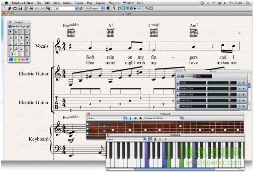 Avid Sibelius是一款非常专业的乐谱创作软件,软件支持简体中文。Avid Sibelius它还可以处理任何型式的音乐,从早期的音乐到爵士乐,从摇滚乐到前卫派,从合唱到交响乐等。