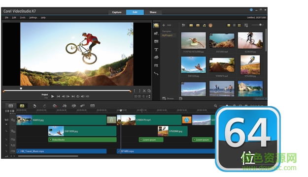 会声会影X7简体中文版(32位/64位)是一款免费好用的影视剪辑工具。本软件具备视频剪辑、视频转场、视频滤镜以及屏幕录制等功能。同时支持VCD、DVD光盘刻录操作。是业内最好用的视频剪辑程序。欢迎大家在绿色资源网下载安装!