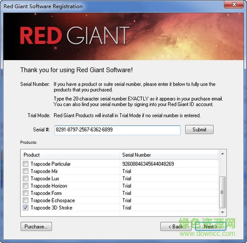 2、win版本提示:请在安装时的“software registration”注册窗口依次填入插件序列号,点击“submit”提交后,再点击“next”继续安装,否则会失败。