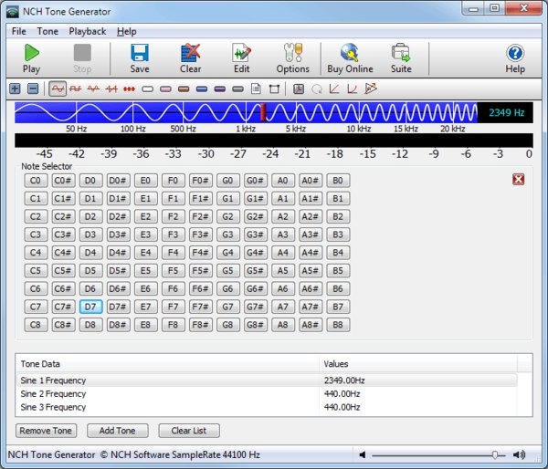 NCH Tone Generator是一款专业煲箱/煲耳机工具。软件方便好用,功能强大,允许你更好的调试自己的音响设备。如果您试遍了n种播放器+n种增强插件都无法满意自己机器的音质,那么NCH Tone Generator应该是您不错的选择,它还一款很不错的音调调试器。