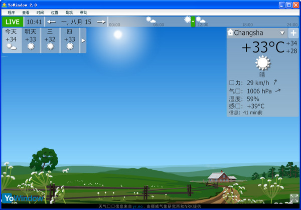 YoWindow(漂亮的天气屏幕)一款非常漂亮的的桌面天气预报软件。这个软件内置的天气预报功能是以半透明样式显示的,并且还能够告诉你明后两天的天气情况。支持全球10万个以上城市的天气预报。软件画面根据当期季候、时间显示出宁静的美景,景观变化反映在您所地点实际的天气情况,同时,它也可以作为屏保使用。包括真实的云层、雨、雪、雾、温度、气压、风速甚至雷暴等效果。