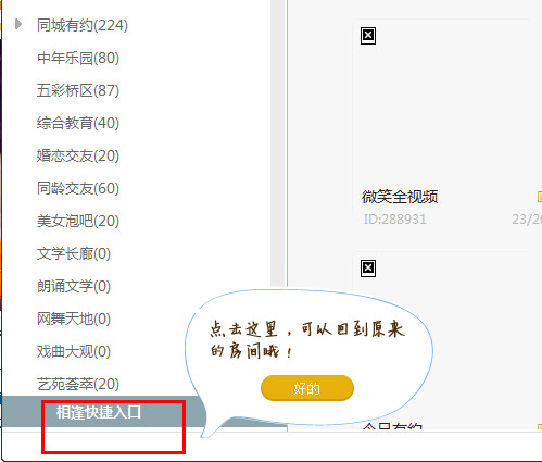 及其细致的分类,不同的人群可以选择不同的板块交流、交友,最下方的相逢快捷入口可以返回大厅