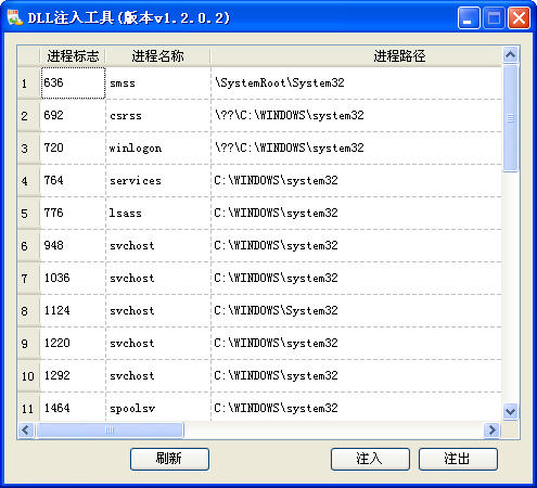 本程序可以列出系统中的进程,并显示进程的路径和进程的ID.
