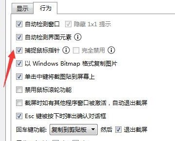 3.进入截屏界面后,勾选捕捉鼠标指针,如下图所示。