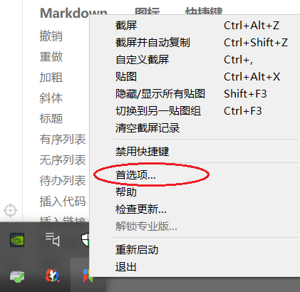 1.打开软件后,在窗口中,鼠标右击Snipaste,点击首选项,如下图所示。