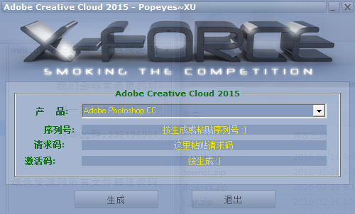2.开启xf-adobecc.exe注册机,生成序列号(先别关注册机后面有用)。