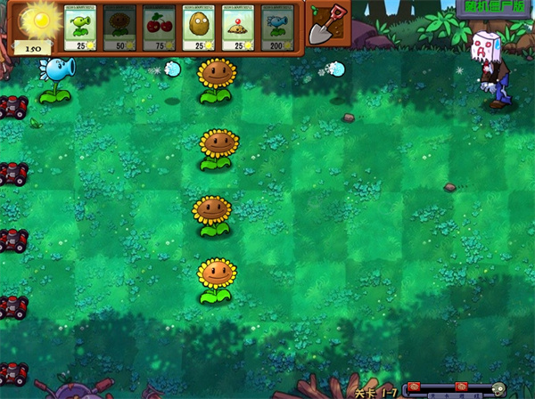 2、随后可以一直种植向日葵,只有这样才有挑战性,也可以种植其他的辅助植物挑战;