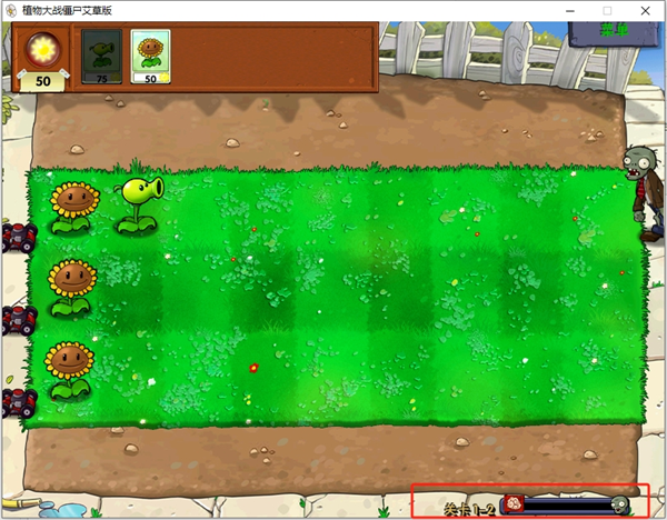 5、在最右下角可以看到挑战关卡进度,一定要及时的摆放好所有植物抵挡到关卡的最后获得胜利。
