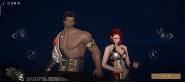 1、打开游戏之后,我们就可以看到不同的族群,玩家可以选择自己想要的角色族群,然后点击【下一步】;