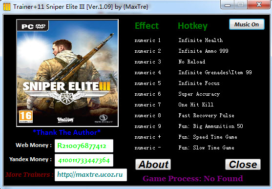 狙击精英3是一款第三人称射击游戏,本作将专注于沙盘式的游戏体验,时代依旧是二战,主战场将设在充满异国风情的北非沙漠地区。深受射击游戏爱好者们的喜爱。本次小编给大家带来一款该游戏的辅助修改工具,添加了无限生命、子弹等11项修改功能,帮助玩家降低游戏难度,轻轻松松度过难关。