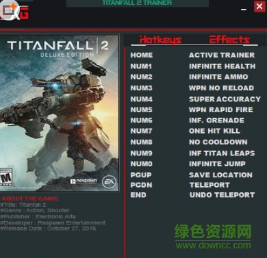 泰坦陨落2修改器正版是一款专为泰坦陨落2游戏打造的11项修改器,集无限手雷,超级精准,无限跳(按住空格)等等功能为一体,需要的朋友赶紧来绿色资源网下载吧