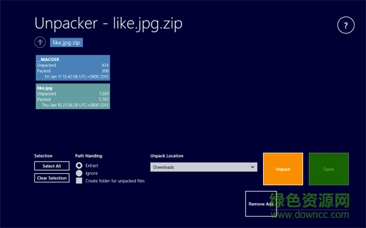 Unpacker是款 Windows 8 下的解压缩工具,其界面风格完全融合进了 Windows 8 的开始界面。Unpacker 支持 ZIP, RAR, 7Z 在内的众多常见压缩格式,熟悉 Windows 8 操作的同学可以轻松上手。