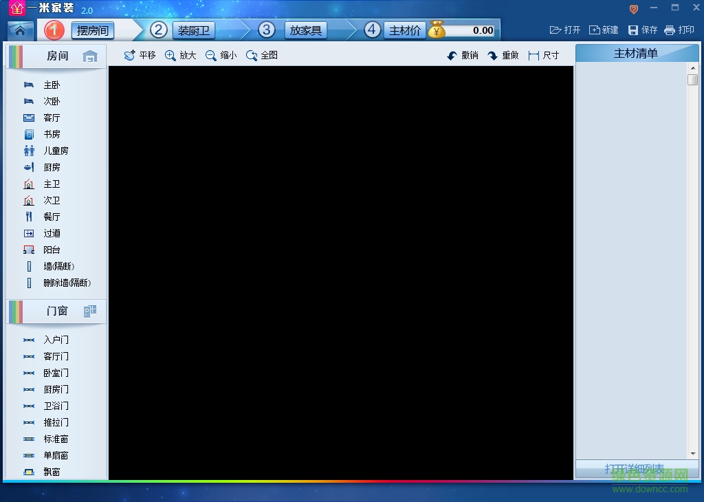 4.三步操作:摆房间、装厨卫、放家具,即可完成家装的主材及价格明细单、以及户型设计和家居摆设方案。