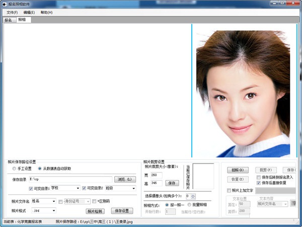 7、照相方式有边报名(录入)边照相,和批量照相(录完或录入一部分后统一照相)两种。