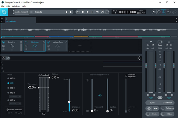 使用Ozone的智能限幅器,使混音响亮,同时保持动态效果。