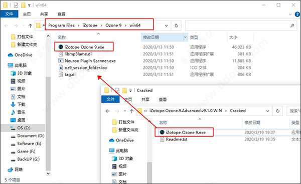 7、将其中的文件“iZotope Ozone 9.exe”复制到软件软件安装目录下覆盖源文件;;