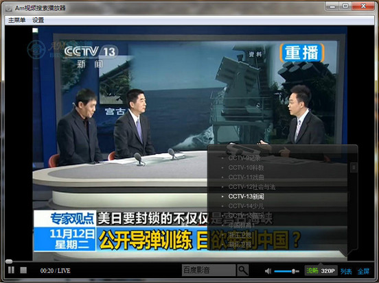 Am视频搜索播放器是一款免费的网络视频播放软件,软件默认加载腾讯电视直播,内置强大的多线搜索功能,播放清晰流畅,软件界面清晰,操作简单。根据网速的不同可以切换清晰度。