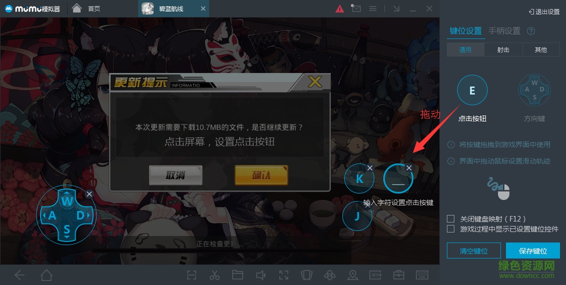 3.打开“键位设置”后,可以在游戏页面右侧直接修改按键。或者您也可以将右侧的“点击按钮”拖到左侧,您还可以修改方向键,修改完成后点击【保存键位】按钮。同理也可以修改射击和其他按键。