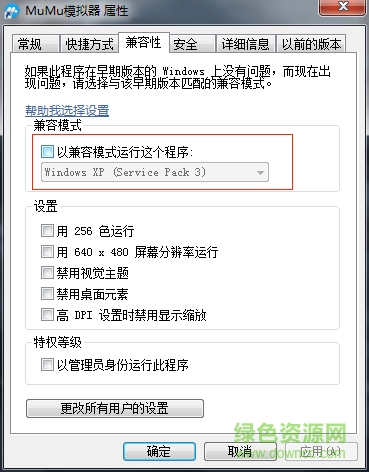 第二步,进入“兼容性”——“兼容性模式”选项中,去掉勾选“以兼容模式运行这个程序”后重启模拟器。