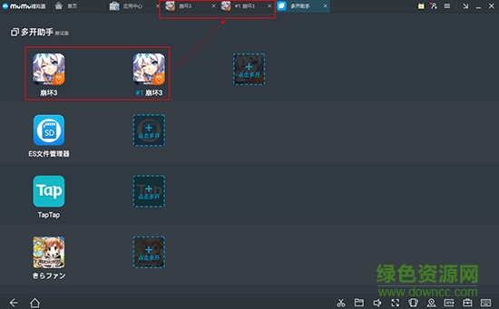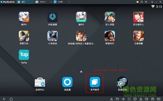 1.打开mumu模拟器,点击下方的“多开助手”选项,如图所示: