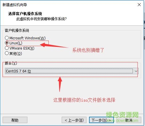 4.选择客户机操作系统linux,下面版本选centos7 64位