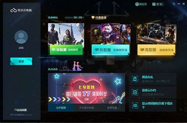领沃云电脑最新电脑版给喜欢游戏的用户打造非常的实用的游戏辅助,你的电脑若是配置不高可以通过软件进行相关的云端配置也可以即时的体验高配竞技游戏的乐趣,操作简单上手轻松,有需要的用户就来下载吧!