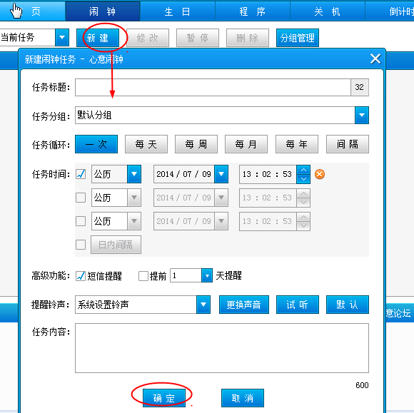 心意闹钟是一款永久免费的绿色电脑闹钟软件,该软件以功能全面、简单易用著称,口碑颇佳!是国内使用人群较多的电脑闹钟!该软件也有着非常独到的设计理念和用户体验,亮点颇多!软件提供:定时闹钟、计时器(秒表)、整点报时、短信提醒、生日管理、日程安排、定时执行指定程序、定时关机、个性皮肤等功能;软件还支持中国传统的农历,可在线保存本地任务,实现服务器备份异地同步。