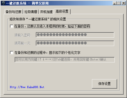 如果您还想把“一键还原系统”变得更个性化,也可以在这里输入个性化的文字信息