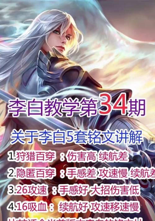 作为王者荣耀中的一位强力刺客英雄,李白以其高爆发、高机动性和高生存能力备受玩家们的喜爱。然而,想要发挥出李白的最强实力,合理的出装铭文搭配至关重要。本文将为大家详细介绍李白出装铭文实战教学攻略,帮助玩家们打造一位无敌的李白,让你在游戏中称霸战场!