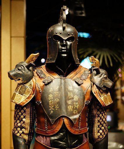 胸甲是另一个重要部分,能够保护士兵的上身部分免受刀枪等攻击。胸甲通常是由钢板、皮革、布料或者铜制成,被分成两部分,分别位于前胸和背部,通过皮带或扣子来固定,以保证紧密贴合。