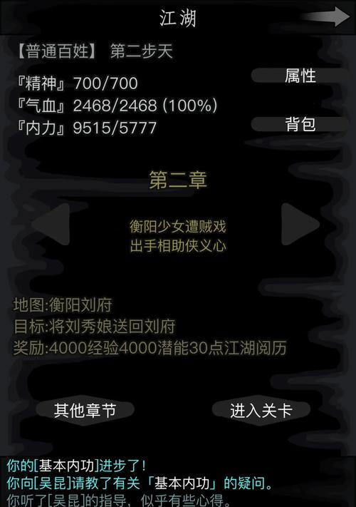 内功修炼对于提升丐帮的整体实力至关重要。本章将介绍如何正确修炼内功,包括选择适合的内功心法、秘籍获取方法以及内功的运用技巧。