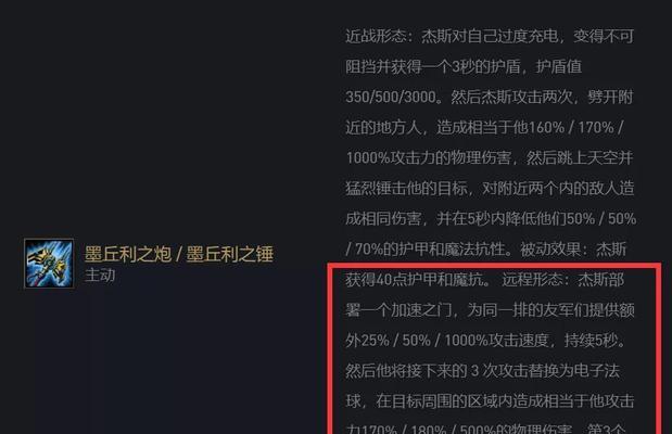 11.技能加强与决斗装备:杰斯的技能加强和决斗能力决定了他在单挑中的表现。本段将介绍一些技能加强和决斗装备的选择策略,帮助玩家们更好地应对各种战斗情况。