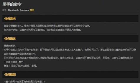 任务要求玩家前往铁炉堡,并从铁炉堡的宝库中获取宝物。这个部分的难点在于铁炉堡内有很多机关和陷阱,玩家需要注意观察并避开。