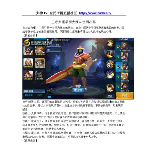 《乱斗王者》是一款热门的多人在线对战游戏,随着版本的更新,游戏中英雄和装备的选择变得越来越重要。本文将为大家介绍最新的出装攻略,帮助玩家们打造全方位的阵容,提高胜率。