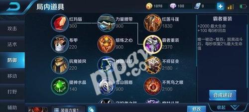 防御出装:巨人之握+红莲斗篷+不祥征兆
