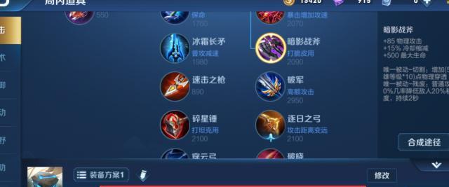 7.第四件装备:暗影战斧——提供高额攻击力和暴击效果,增加猴子在单挑和击杀敌人时的爆发能力。