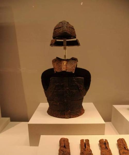 腰带胄主要是用来保护古代战士的腰部,可以起到防剑、防箭的作用。它是由多条皮带组成,皮带上布满了铜片或铁片。