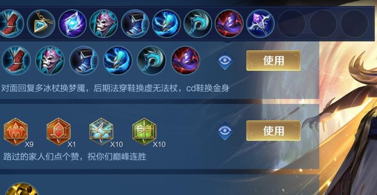 2.出装推荐:对于输出型墨子,推荐出装包括法术强度和法术穿透的装备,如破碎圣杯、光辉之剑等。对于辅助型墨子,推荐出装包括冷却缩减和增加血量的装备,如红莲斗篷、冰霜法杖等。